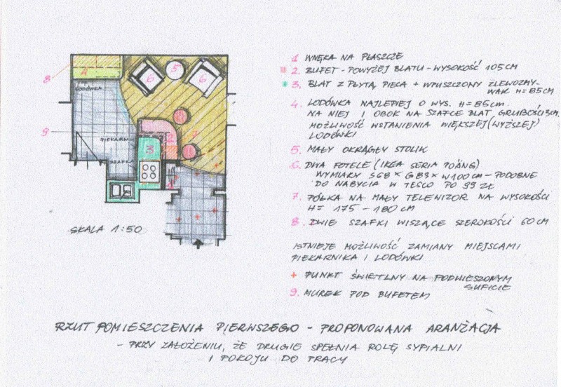 Mieszkanie przeznaczone do wynajęcia. Założeniem jest minimalizacja kosztów przy pełnej funkcji mieszkania.