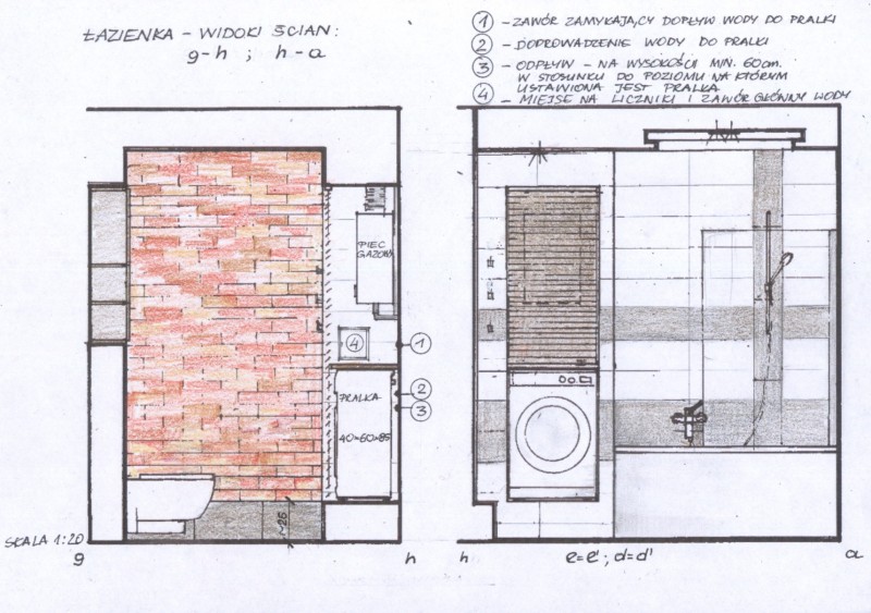 Adaptacja mieszkania w starym powojennym budynku, zbudowanym z cegły. Założeniem było połączenie kuchni i pokoju dziennego. Ciepła w swej kolorystyce cegła, stała się inspiracją do stworzenia tego wnętrza. Wymurowana z niej ściana, jej faktura i kolor, zostały podkreślone poprzez rysujące się w tle szare, gładkie gipsowe ścianki. Dodatkowym elementem podkreślającym zabudowę będą pionowe panele świetlne. Światło dyskretnie będzie wydobywać się z poza ściany.